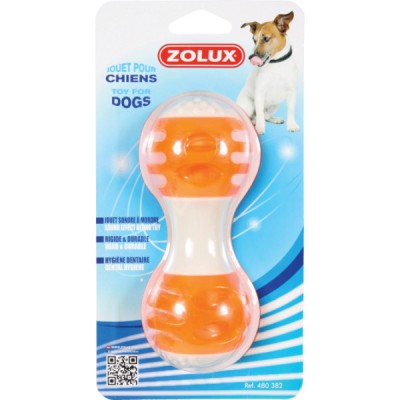 Joguina per a gossos fabricada amb cautxú termoplàstic i naylon amb efecte sonor al mossegar-ho, rígid, durador i aconsellable per una bona higiene i salut dentals. Ideal per a tot tipus de gossos i de totes les edats.